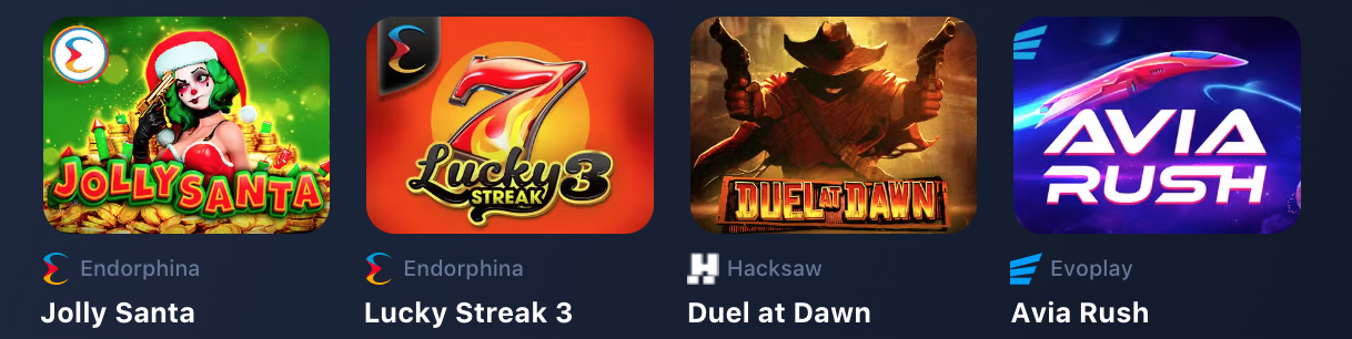 22 saját fejlesztésű, exkluzív játék: Próbáld ki azokat az egyedi alkalmazásokat, amelyeket csak a 1win kínálatában találsz meg! Olyan népszerű címek várnak, mint a Plinko, Lucky Jet, Rocket Queen és Mines.